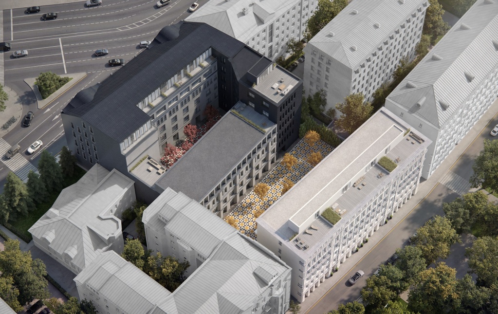 Николай Ляшенко и Александр Цимайло, основатели бюро «Цимайло, Ляшенко и партнеры», отмечают: «Каждый из четырех домов имеет свою историю, архитектурную концепцию и стиль, образуя актуальное пространство для жизни. Мягкие оттенки серого и белого на фасадах сглаживают разнородную пластику стен, а два насыщенных цветом внутренних двора объединяют здания в архитектурный ансамбль».