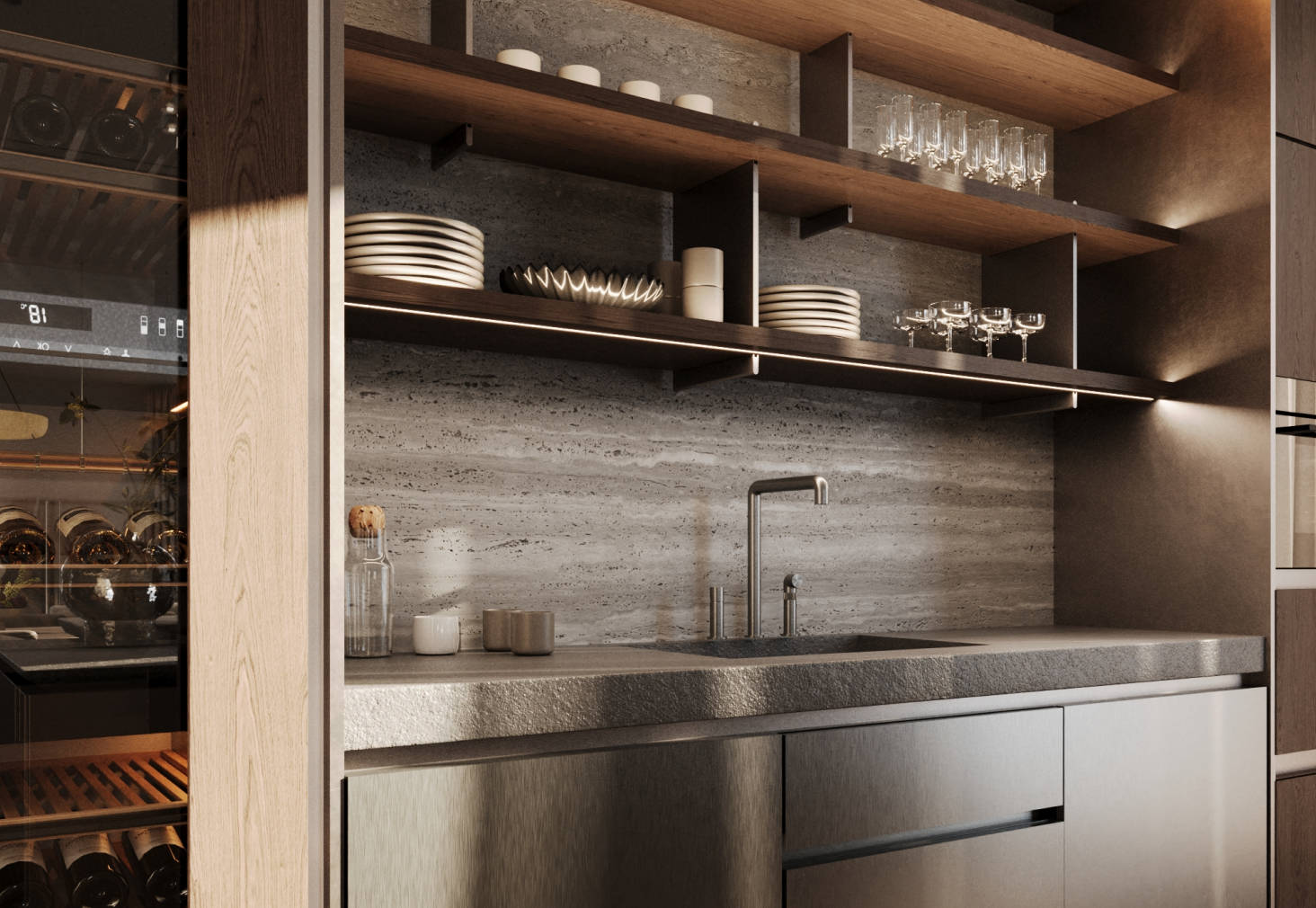 Одиннадцать реализованных проектов за десять лет. Отделка эволюционирует: появляются холодильники для косметики, скамейки в душевых, винные шкафы. Все детали выверены жизнью резидентов. Vesper Погодинская — это накопленный опыт создания клубных домов.