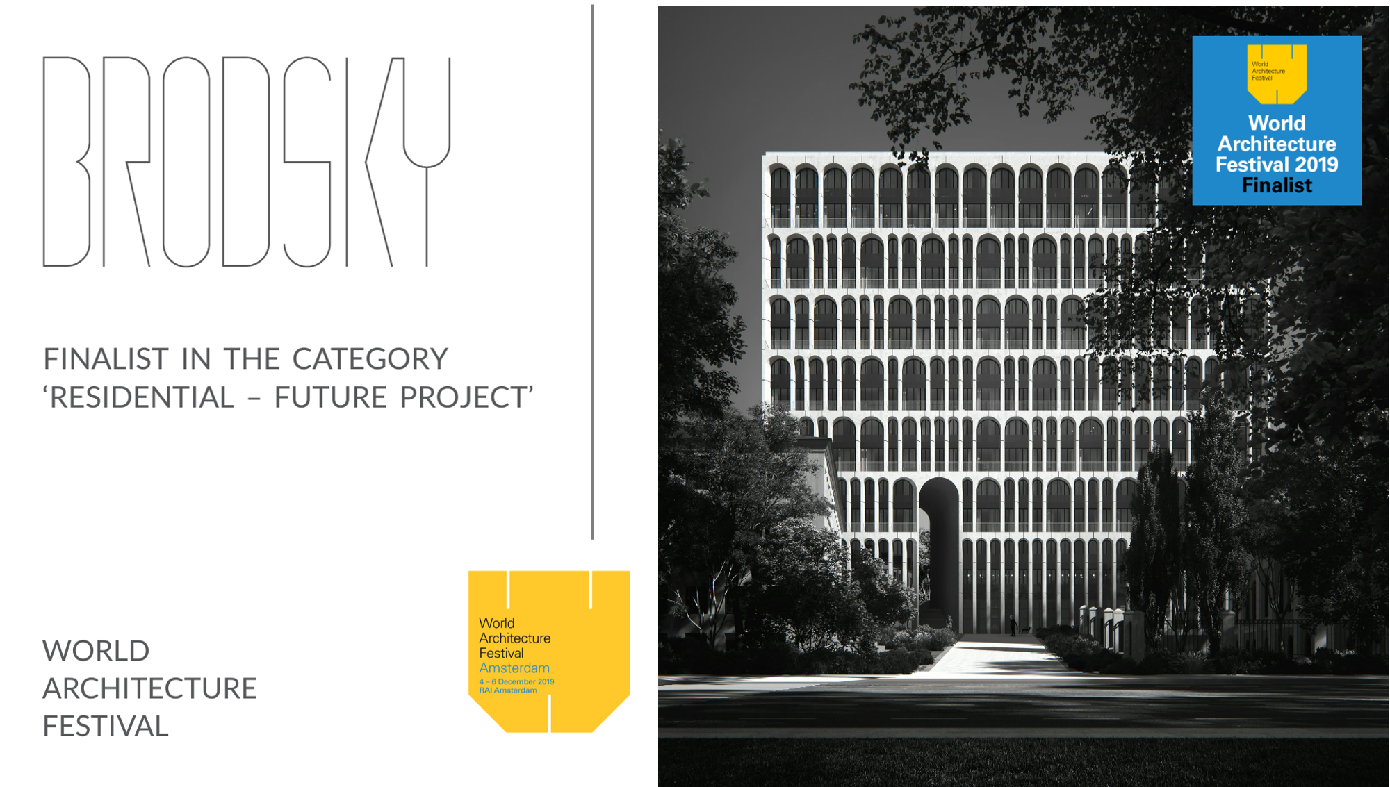 Клубный дом Brodsky стал финалистом международной премии WAF Awards World Architecture Festival в номинации Residential — Future Project.