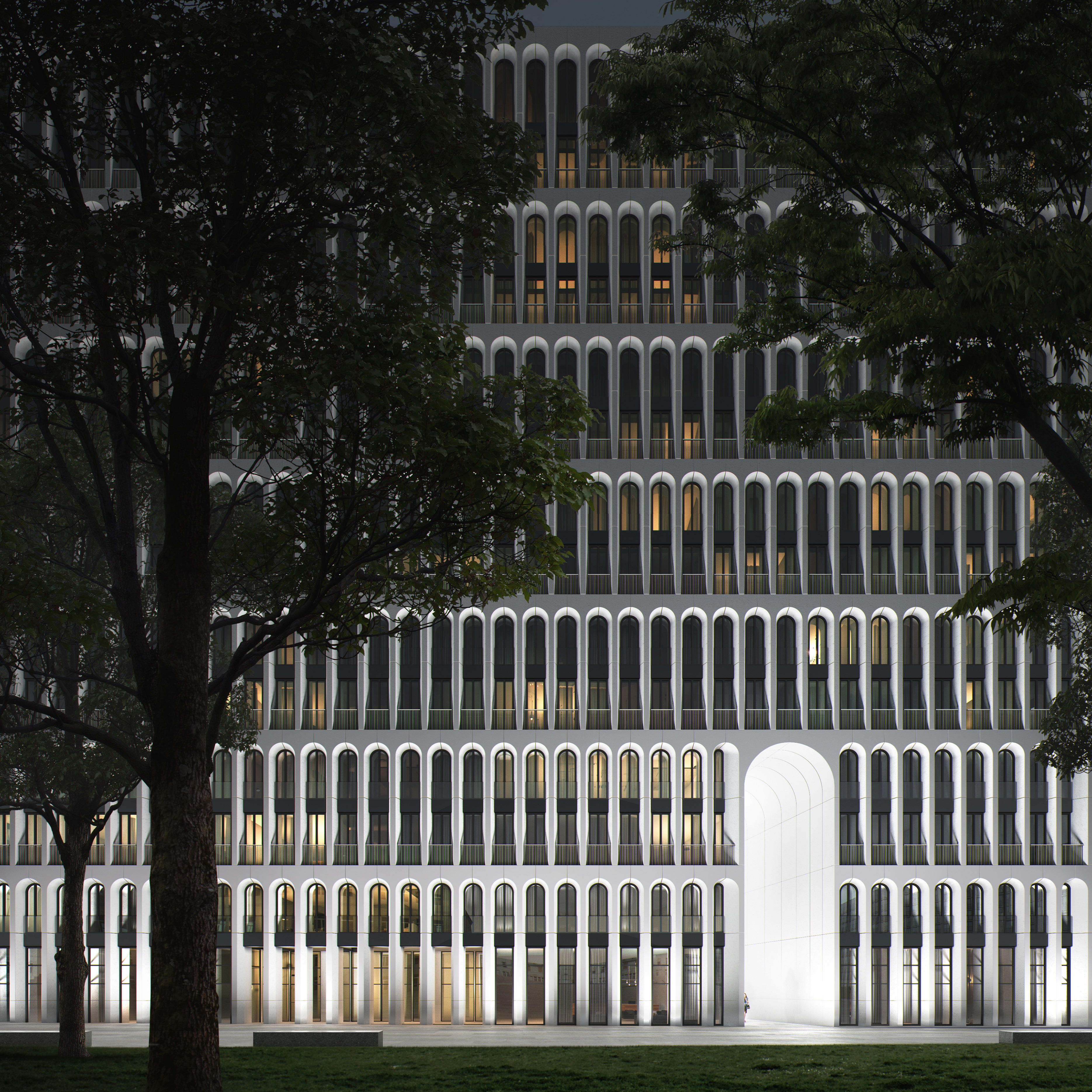 Архитектурная концепция нового проекта Vesper в Хамовниках разработана архитектурным бюро «Цимайло Ляшенко и партнеры» совместно с французским бюро Antonini Darmon и напоминает о многоуровневых арках римского Колизея и венецианских палаццо. Рисунок фасада дома представляет собой комбинацию арок 3 видов различных по ширине и высоте. Со стороны набережной фасад выглядит торжественным, со стороны двора — более спокойным. Самые большие арки являются окнами гостиных и смотрят на набережную, в то время как окна спальных зон квартир выходят во внутренний двор.