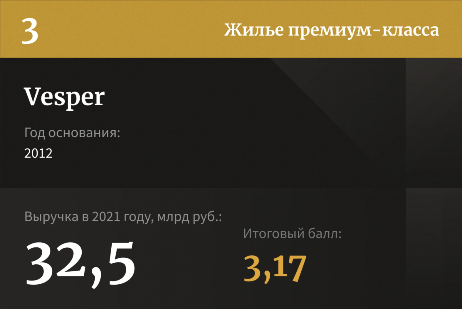 VESPER HOLDS A LEADING POSITION IN THE RUSSIAN DEVELOPERS CONFIDENCE RATING – 2022