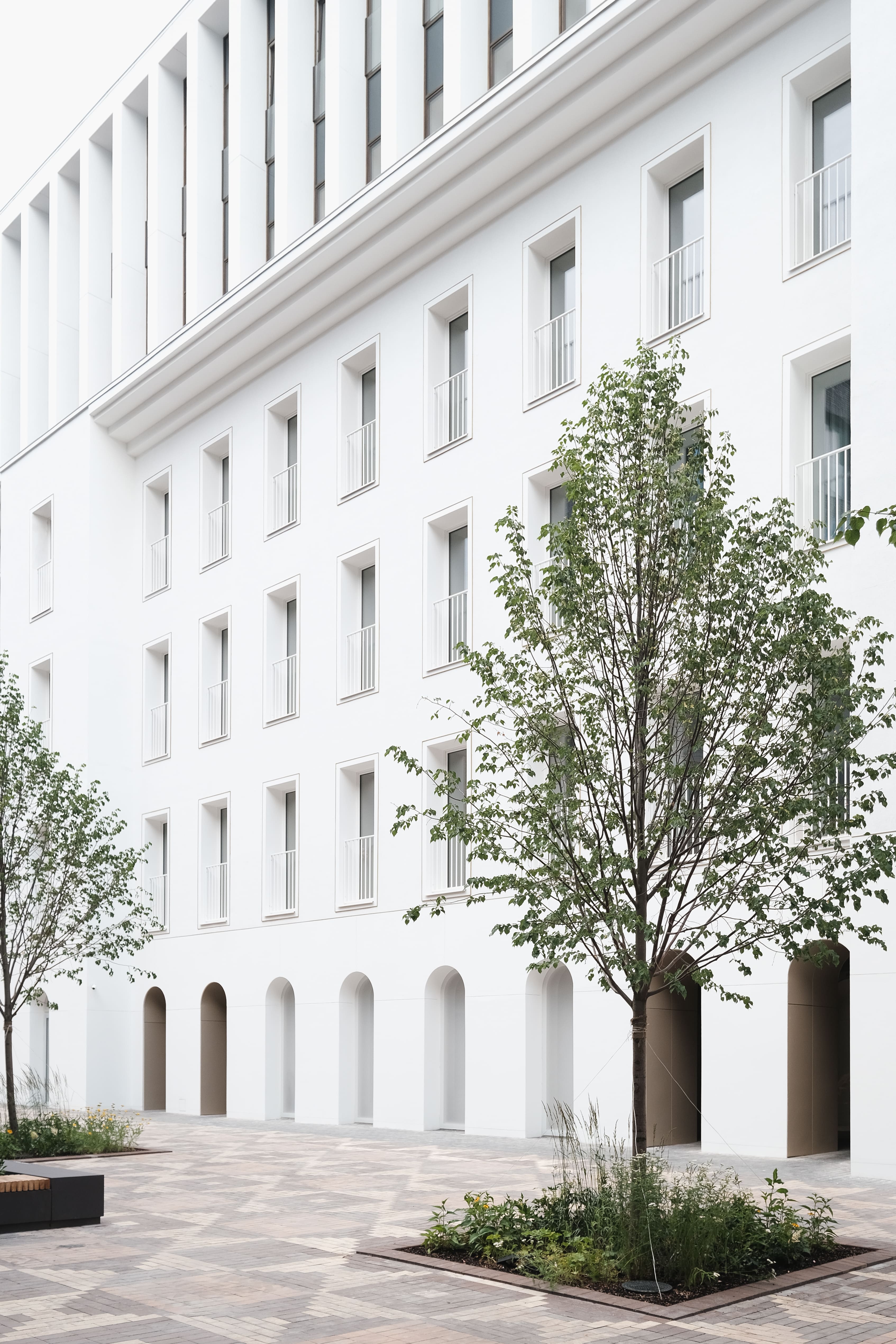 The architectural concept of each of the four houses develops its own history and style, forming a contemporary space for life. Mosaic courtyards unite the Cloud Nine buildings into a single architectural ensemble.
