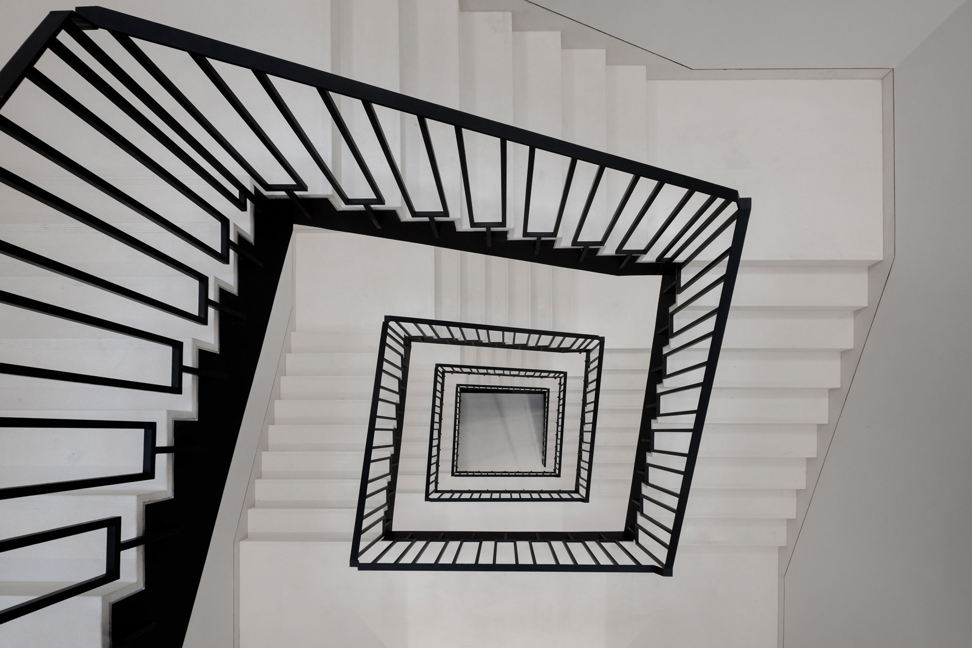 The monumental marble staircase is both an exquisite design element and the main player in an architectural game of shapes and volumes.