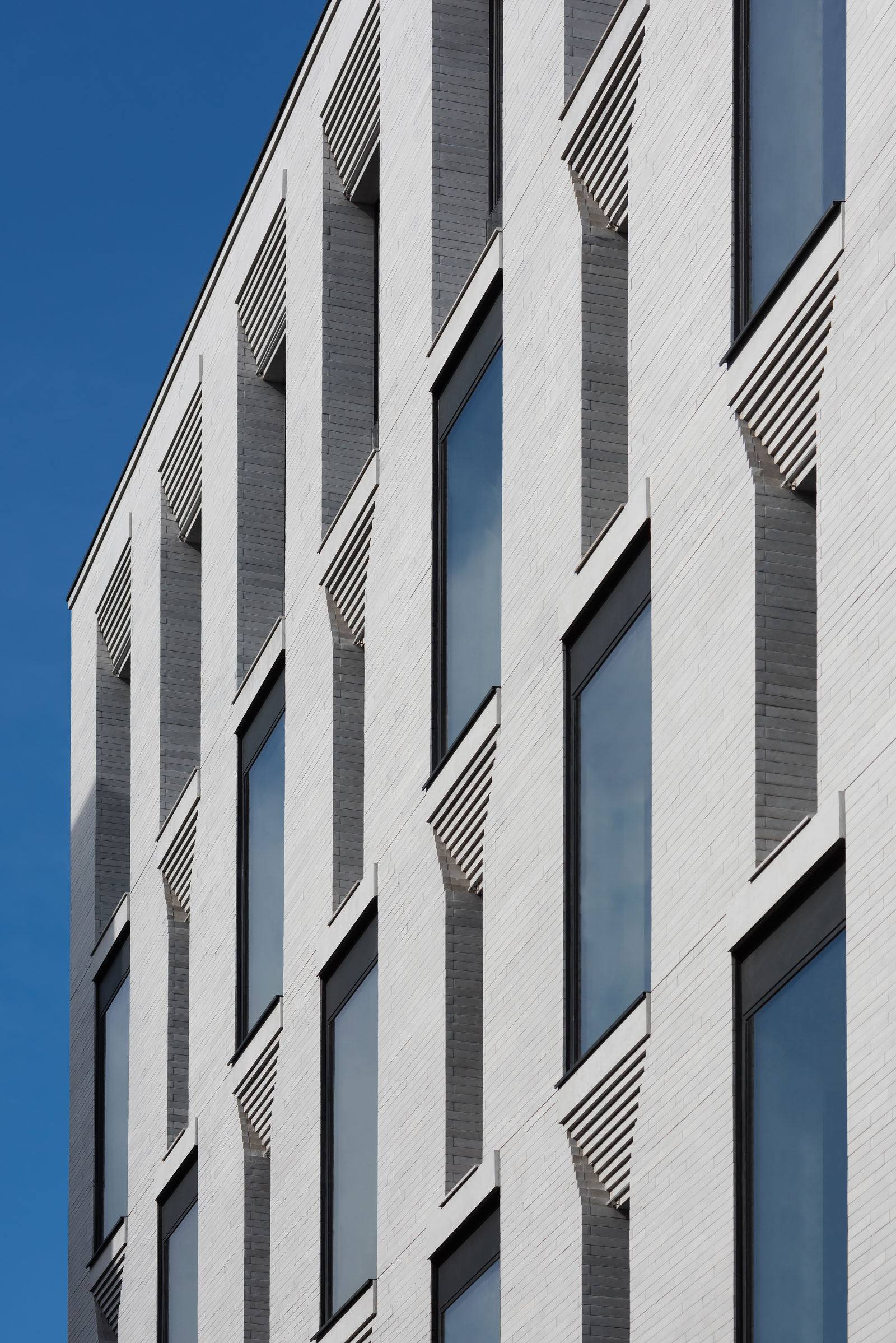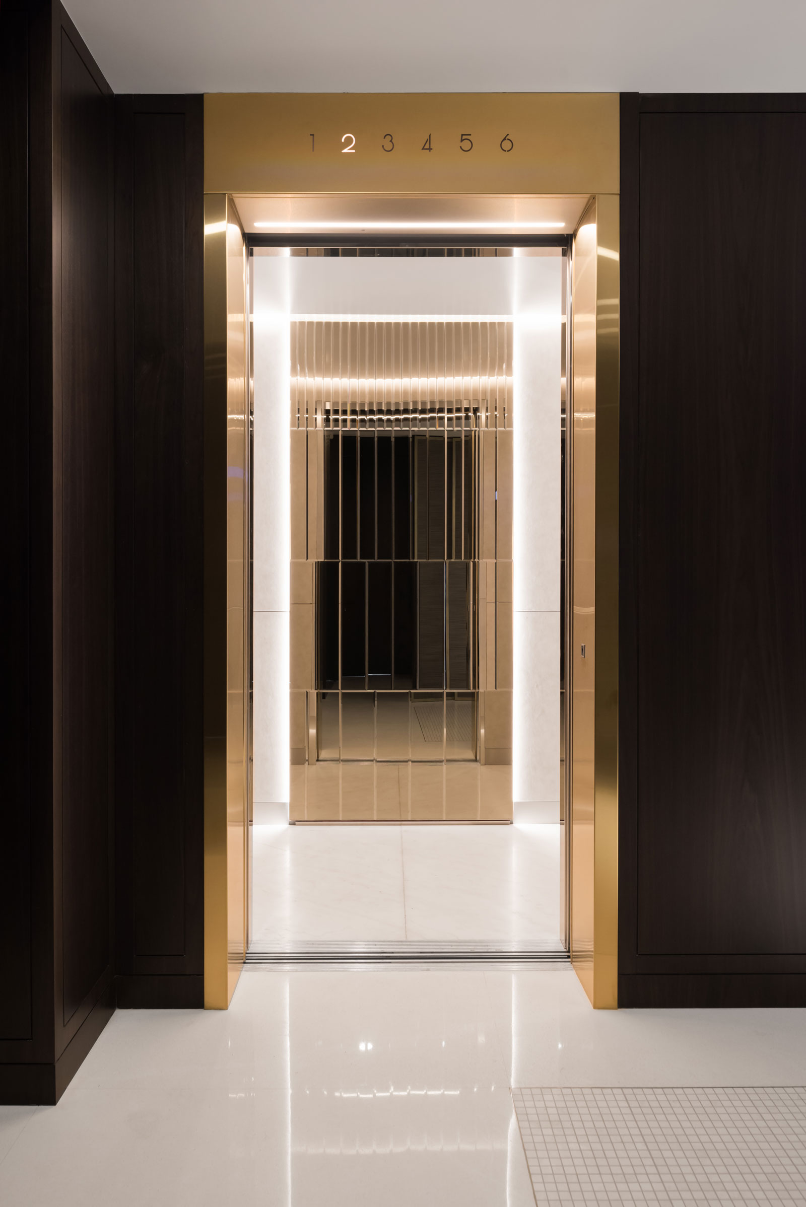 The rhythm of the windows determines the unified geometry of the building. At the same time, its strict and elegant facade consists of 42,800 elements made of natural stone. Each bar has been mounted manually with pinpoint accuracy. The velvety texture of the building is emphasised by the panoramic windows made, through a custom project in Switzerland, from completely transparent glass with Optiwhite technology.
